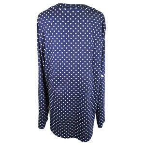 HALIFE Long Sleeve Polka Dot Top XL Navy White Roll Up Polyester Spandex 18-411