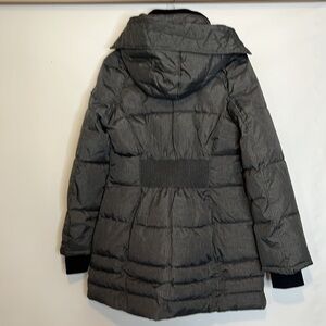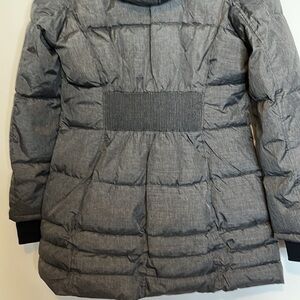Pit to pit 21”, sleeve 25” also has thumb hole , length 32”, removable hood, in very good condition. No rips, stains or holes.