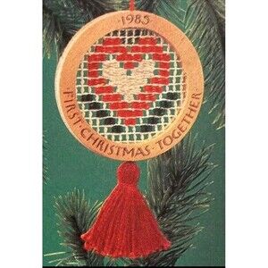 HALLMARK 1985 OUR FIRST CHRISTMAS TOGETHER Wood Woven Macrame