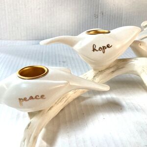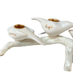 HALLMARK 2008 Peace Hope Joy Love White Doves Perched on a Branch Candle Holder