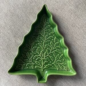 HALLMARK Green Ceramic Tree Dish Platter Holiday Christmas Winter