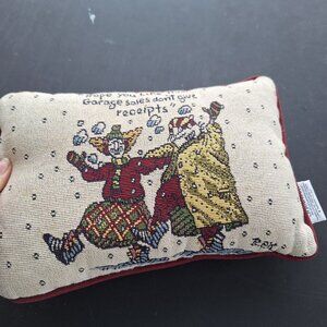 HALLMARK SHOEBOX DECORATIVE PILLOW ..."GARAGE SALES DON'T GIVE RECEIPTS"