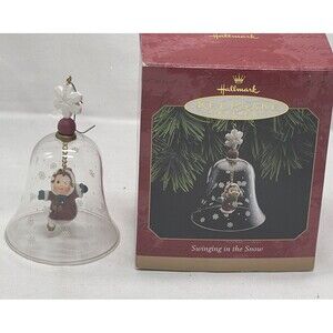 HALLMARK SWINGING IN THE SNOW 1997 GLASS BELL CHRISTMAS KEEPSAKE ORNAMENTS
