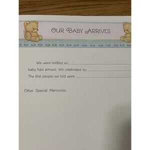Capture precious moments with this vintage Hallmark Baby Book, "Our Baby," lovingly crafted in 1982. Timeless keepsake features a sweet scene of a baby bear riding a rocking horse and top and bottom borders of adorable baby animals. It is perfect for preserving the milestones and memories of your baby's early years.