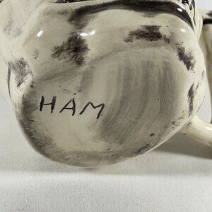 This wonderful mug measures approximately 4 ½ inches high and approximately 4 inches wide, including the handle. The makers signature with the letters HAM can be found on the bottom. This adorable mug 16 ounces of liquid. It is in great condition. See photos.