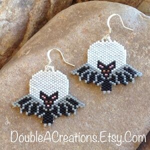 HALLOWEEN Bat in the Moon Beaded Earrings, New, Handmade by Me
