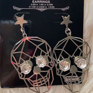 HALLOWEEN Bling Skeleton Dangle Star Accent Earrings NWT Silver Color