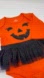 Long sleeve one piece pumpkin costume with black tutu and embroidered face. Black and orange headband. Snap opening for easy changing. #1218