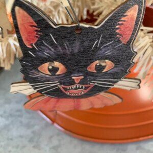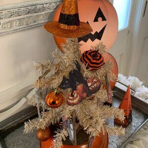HALLOWEEN REPO FEATHER TREE 15 "*METAL COLLAR*22 ORNAMENTS*12 W00D CHARACTERS