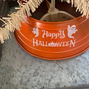 The METAL COLLAR that fits over the stand has ghost graphics with HAPPY HALLOWEEN.