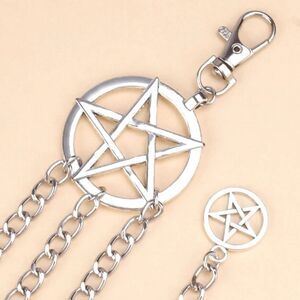 HALLOWEEN SALE Silver Goth Vintage Pentagram Layered Chain Belt