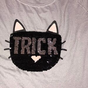 Halloween trick or treat sequin reversible graphics cozy kitty T-shirt dress