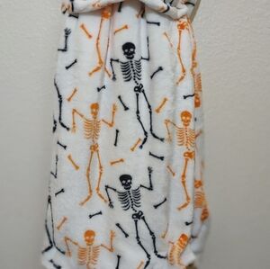 Halloween velvet soft throw blanket treat bag included 50x70 in black and orange dancing skeletons perfect for Halloween or any time of year.