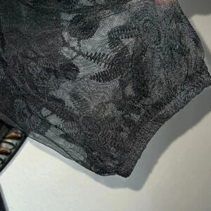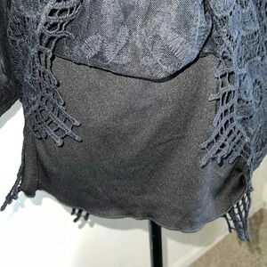 HALO Women’s Black Lace Fringe Sheer Floral Lined Boho 3/4 Sleeve Top Medium