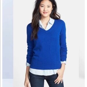 HALOGEN | 100% CASHMERE Blue V-Neck Sweater size S soft cozy