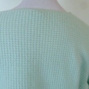 HALOGEN 100% CASHMERE thermal weave aqua blue v neck SWEATER M