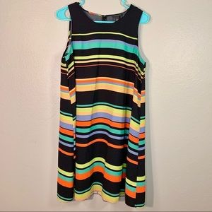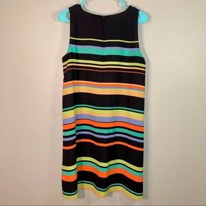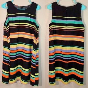 HALOGEN Black & Rainbow Stripe Sleeveless Shift Dress - Size Medium