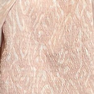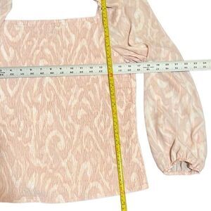 HALOGEN Blouse L Scrolling Pink Variegated Smocked Puff Sleeve Scrolling Fairy