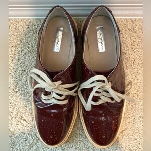 Tags oxford shoes, burgundy patent leather flats, brogue style shoes, classic, preppy leather oxfords, academic, dark academia