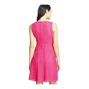 HALOGEN Embroidered Eyelet Fit Flare Dress 2 XS Pink Dot Fuchsia Spring Brunch
