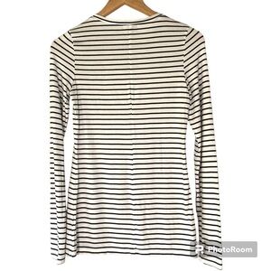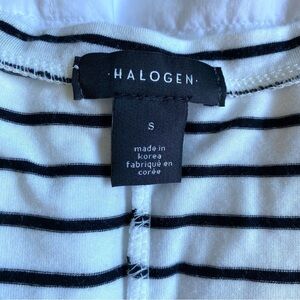HALOGEN Essential Jersey Knit Black And White Striped Long Sleeve Top S Excellent gently loved condition with no stains or flaws. Soft stretchy Modal/Spandex blend. Coastal Casual Academia Officewear Collegiate Nautical. Flat lay measurements: Bust 15” Length 27” We are a smoke free, pet friendly home.