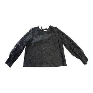 HALOGEN Floral Lace Long Sleeve Blouse | L | Black | Romantic Feminine Office
