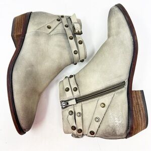 HALOGEN GRAY LEATHER STUDDED ANKLE BOOTS BOOTIES WOMENS SZ 7