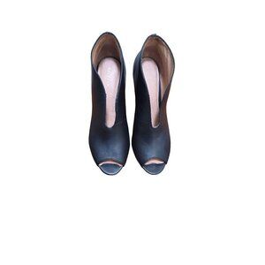 HALOGEN KATRINA BLACK LEATHER OPEN TOE ANKLE BOOTS SIZE 8