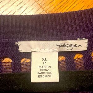 HALOGEN KNIT TOP WOMEN XLP NAVY BLUE ROUND NECKLINE SHEER LOOSE KNIT.