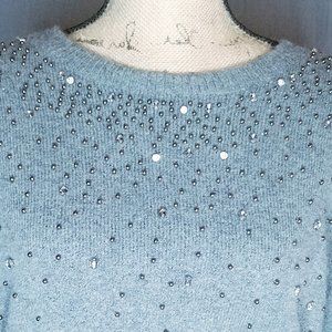 HALOGEN - NWOT Embellished Grey Crewneck Sweater M