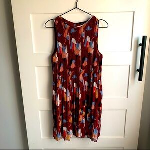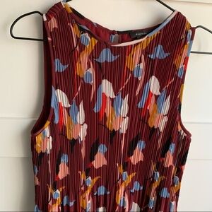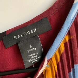 HALOGEN | NWT Burgundy Spots Pleated Sleeveless Shift Dress sz Small Petite
