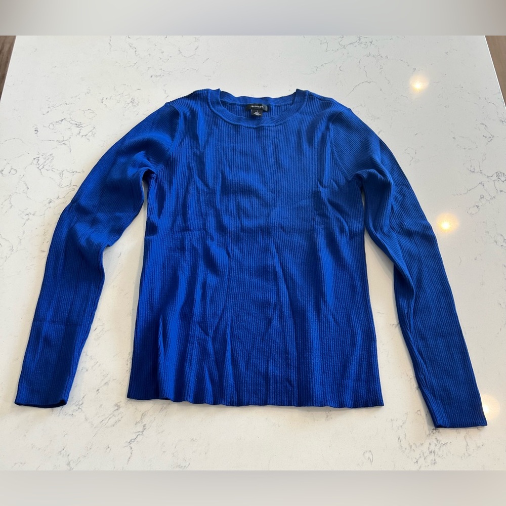 This cobalt blue stunning ribbed sweater top is a touch wrinkly but it’s hardly worn and ready for a new home where it will actually get worn! It’s just too cute to just be hidden away in my closet. No noticeable flaws, very good condition!! ⭐️🦋