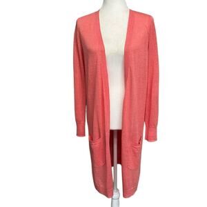 HALOGEN Salmon Colored Linen Blend Long Cardigan Sweater Women’s Size Small