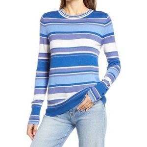HALOGEN Striped Crewneck Sweater Blue White - Medium - NWT