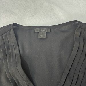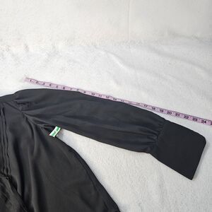 HALOGEN Sz S Black Cross Pleated Dress L/s Shirt NWT Low Plunge Neck