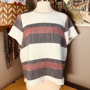Short Sleeve, Raw Hem, Zip Closure, Crew Neck, Lined