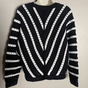 HALOGEN V-Stripe Pattern Black/White Sweater Cropped Sz Small - EUC