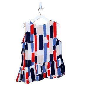 HALOGEN Womens Blouse Medium Sleeveless Color Block Sheer Peplum Ruffle Red Blue