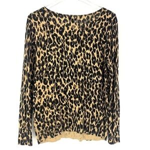 HALOGEN Women’s M Leopard Pattern Pullover Sweater Pima Cotton Viscose