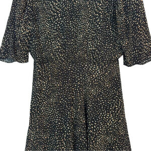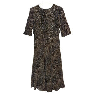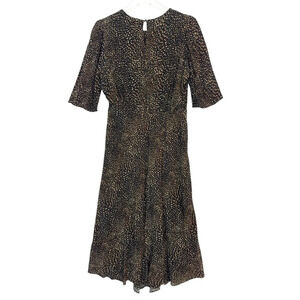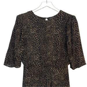 HALOGEN Womens Puff Short Sleeve Bias Cut Animal Print Midi Dress L