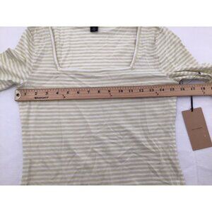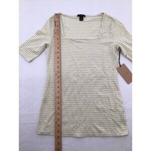 HALOGEN Womens Size XS Square Neck Knit Short Sleeve Top in Green White Stripe