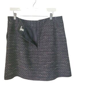 HALOGEN Womens Skirt SZ 12 Black Tweed Lined Pleated Black Cream A-Line Short