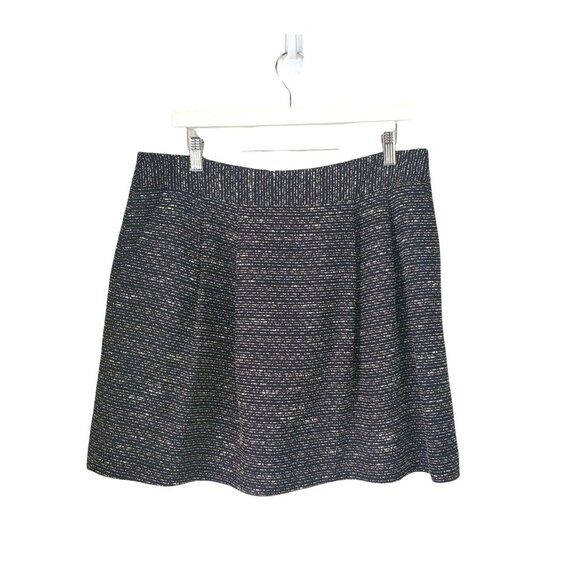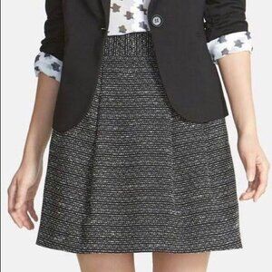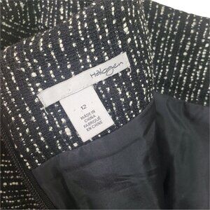 HALOGEN Womens Skirt SZ 12 Black Tweed Lined Pleated Black Cream A-Line Short