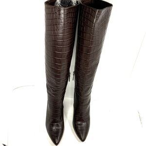 HALOGEN X Atlantic-Pacific Adrina Brown Croc Embossed Tall Boots