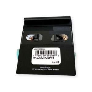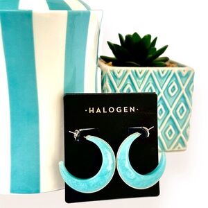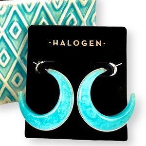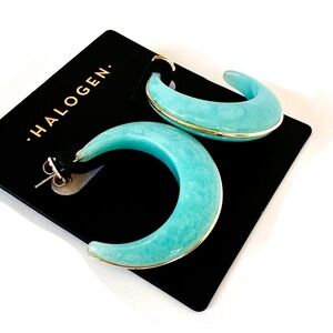 HALOGEN for Bloomingdale’s 2” Aqua Resin Crescents with Gold Trim NWT