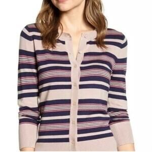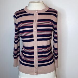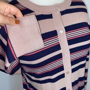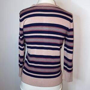 HALOGEN small Petite Pink Navy knit button cardigan Striped pattern 3/4 sleeves