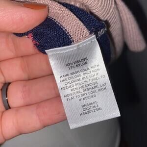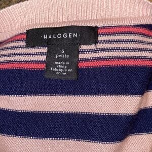 Very good condition, HALOGEN, size small petite, colors: pink & navy, striped pattern, super soft knit material, material has stretch, button cardigan, 3/4 length sleeves, ribbed collar, ribbed hem, ribbed cuffs
