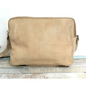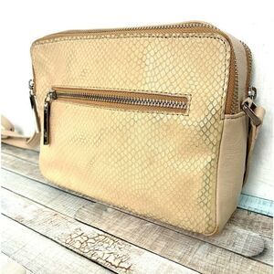 HALOGEN SNAKE BEIGE GENUINE LEATHER ZIP X-BODY SHOULDER BAG HANDBAG CAMERA BAG