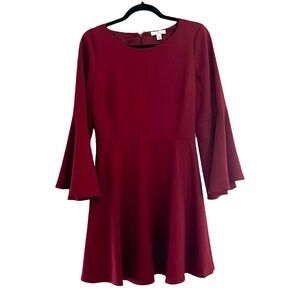 HALSTON Crew Neck Fit and Flare Cocktail Red Mini Dress Sz 4