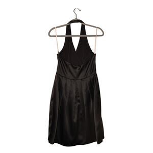 HALSTON HERITAGE $495 Black Beige Satin Halter Cocktail Dress Ruffle Front 6
